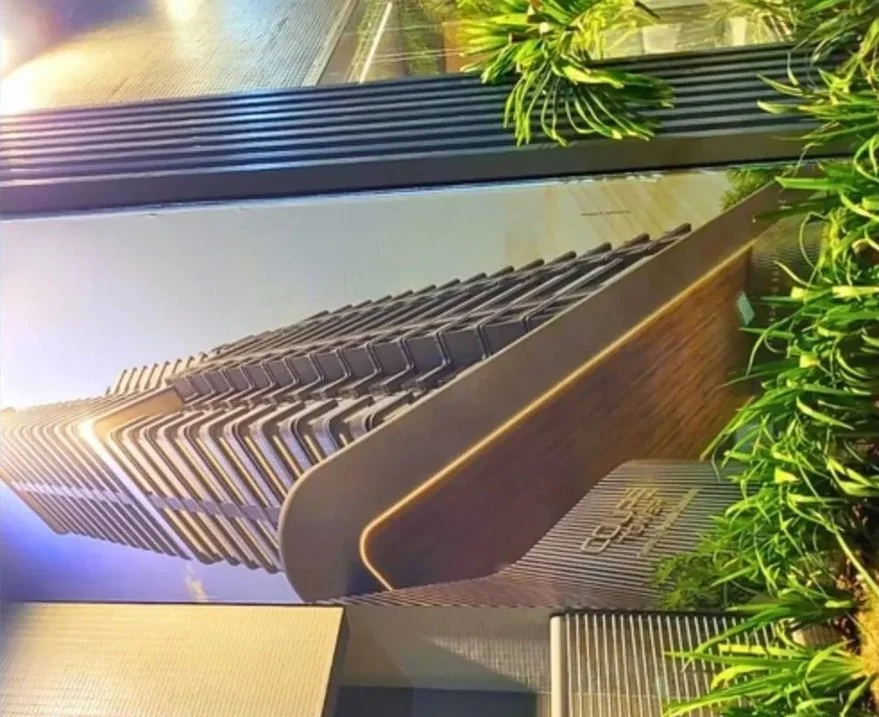 Lona com impressão digital, fixada em estrutura e iluminação externa.
